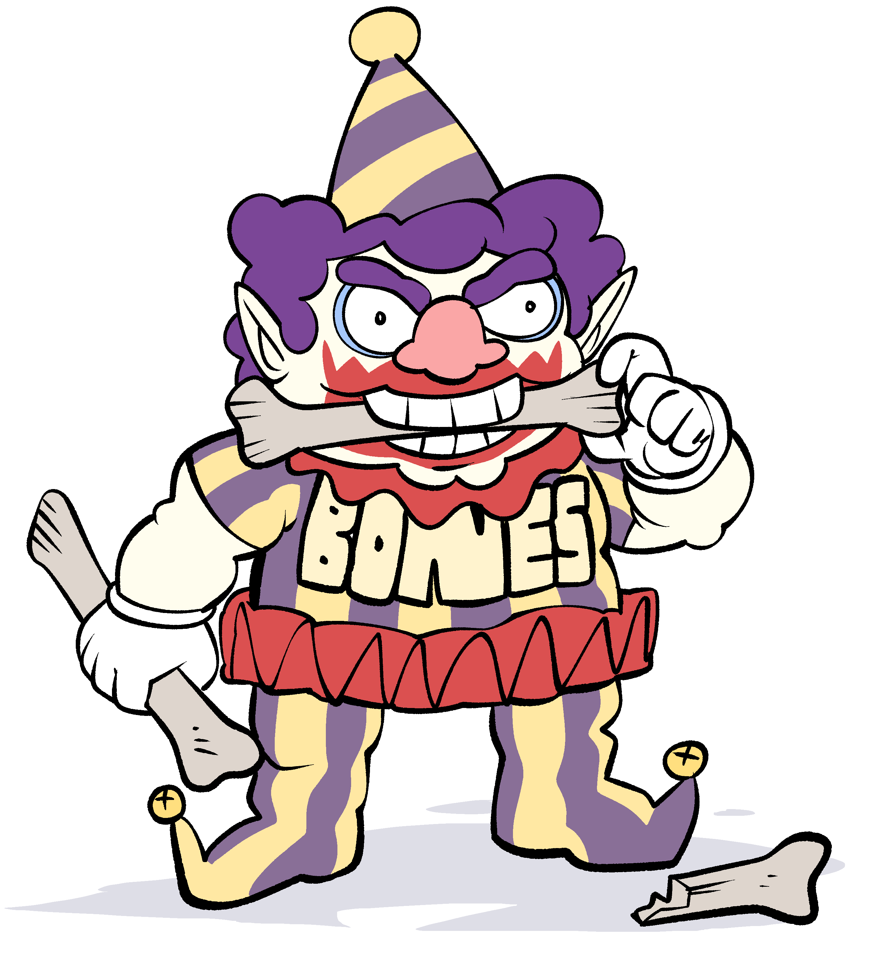 This is an alternate-universe Wario called “Bone Eater the Clown.” He's the same as Wario except his name is “Bone Eater the Clown” instead of “Wario,” and he's a clown who eats bones. Watch your bones, folks!